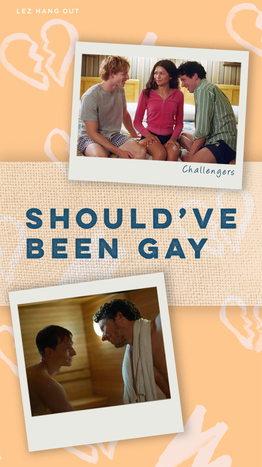 This week, Leigh (@lshfoster) and Ellie (@elliebrigida) hang out and talk about why the 2024 box-office smash hit, Challengers, Should’ve Been Gay(er). Honestly, we went into this movie assuming it was going to be so much gayer than it actually was. All of the promos hyped the threesome and made the story sound super queer, which made us all the more disappointed when it just did not deliver. Luckily, we have plenty of ideas on how to fix Challengers so that it can be the gay movie we were advertised.